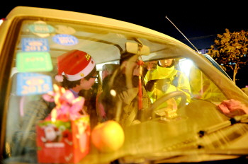 24日夜幕降临,日照市区各大商场、酒店、KTV、酒吧等休闲娱乐和购物场所,在圣诞树、彩灯的装扮下,节日气氛浓郁。为让市民平安愉快地度过平安夜、圣诞节等西方节日,日照市公安消防支队开展“零点”夜查行动,对市区人员密集场所进行检查。
