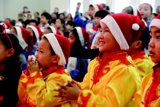 24日上午,滨城区东方红幼儿园内外焕然一新,300余名幼儿身着盛装,化身不同角色,在红毯上走秀一展自己的风采。园长陈蕾化身圣诞老人与幼儿大跳流行歌曲《小苹果》,掀起阵阵喝彩。