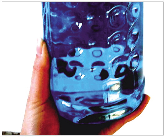 徐先生的家人向记者展示这瓶劣质玻璃水。 记者 于鹏飞 摄