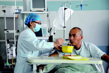 医护人员照顾“无主病人”(资料片)。 本报记者 王鸿哲 摄