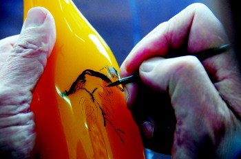 无论是鸡油黄还是灯工石榴,其最基本的工艺都是熟料、吹制、塑形与冷却,一般的琉璃制品都需要冷却3天左右才可最终成型。“现在的烧制技艺已经很成熟了,但在传承上,就要靠那些真的肯花时间来学的年轻人才行。”王乃宝说,一个灯工石榴的背后是几十年的琉璃烧制经验,现在工作在车间里的工匠大多在40岁以上,坚持十五年以上,才最终获得了琉璃工艺省级大师的荣誉。