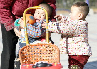 时间:2014年12月17日 自述:小哥俩抢球。 点评:不松开手一起玩。