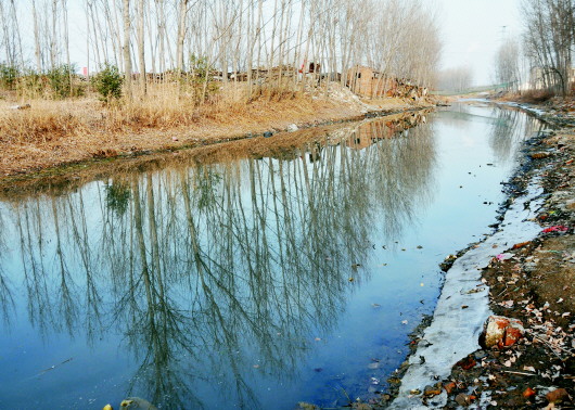 25日下午两点,记者先后到鲁抗集团东部和西部的老运河进行了实地查看,并没有闻到水面上有刺鼻气味。倒是位于济宁城区西郊的二里半村北侧,老运河水面发黑,并出现了多处断流。不过,村民说此地“多是生活污水”。