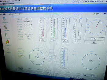 “车上的检测仪器有地面尘土称量仪、扬尘检测仪和一个小的气象站。还有一台电脑专门收集分析数据,并能实时显示测量结果。”王富生说,有了这些仪器,空气中有多少尘土,开出去走一圈就能知道。