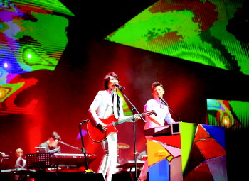 “羽泉16年了,总有一首歌你们会唱”,演唱会现场,羽泉的每一首歌几乎都能掀起现场近万人的大合唱。《最美》、《彩虹》、《深呼吸》、《冷酷到底》,这些熟悉的旋律瞬间激发起70、80后的青春记忆;而《敏感动物》、《Paradise》这些新歌让现场90后甚至是00后也跟着舞动起来。
