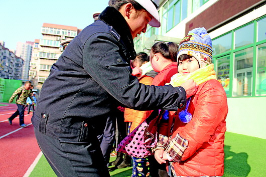 25日是圣诞节,天桥区特教学校——影壁后街学校的特殊孩子收到了天桥区交警大队一中队交警捐赠的温暖三件套——棉帽、围巾和手套。 本报记者 李飞 摄