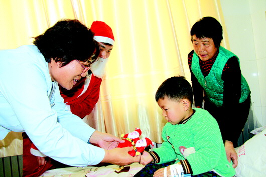 12月25日,章丘市妇幼保健院的医务人员装扮成圣诞老人,与儿童医院领导一起来到输液中心,为正在输液的小朋友送上节日小礼品和美好祝愿。此次活动共送出小礼品400件,300余名小朋友收到圣诞节礼物。