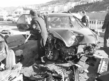 据介绍,悦达起亚车出了璜山隧道口后,司机看前方一辆车并道过来,就猛打方向,结果车辆失控,撞向对面车道的宝马车。