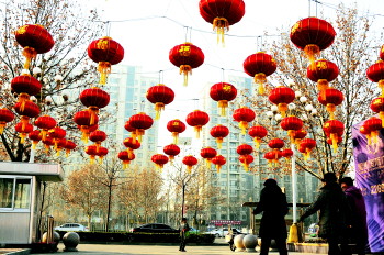 12月25日,在东风路星凯楼盘前,高高挂起了红灯笼,迎接新年到来。 本报记者 马志勇 摄