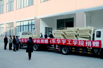 25日,山东华宇工学院将价值50万元的闲置床集中捐赠给宁津一中、德州市第二职业中专、德州市慈善总会学校。 本报记者 徐良 通讯员 张静 摄影报道
