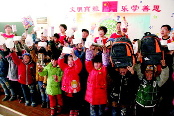 12月24日下午,安利志愿者来到东港区三庄镇竖旗小学,给那里的孩子们送去了饭盒、书包、钢笔、零食大礼包等圣诞礼物,收到礼物的孩子爱不释手。安利志愿者还从家居安全、平安出行、自我防护三个方面给孩子们上了一堂安全知识课,教孩子预防生活中隐藏的意外伤害隐患,认识常见的道路信号灯和交通标志等,孩子们听得津津有味。
