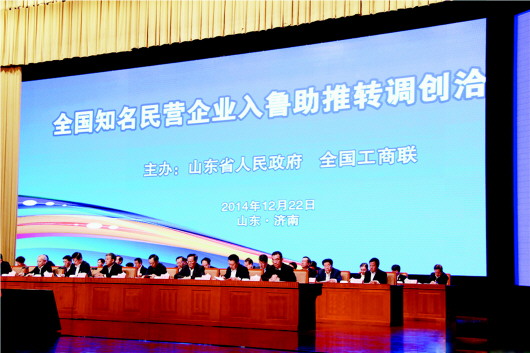 经济步入新常态的山东,加速实现经济转方式、调结构、增创发展新优势的山东,显然蕴含着无限商机。中共山东省委书记姜异康表示,“民营经济是山东省经济社会发展的重要力量,省委、省政府对此高度重视,并出台了一系列具体政策措施,取得积极进展。我们一定以这次会议为契机,通过加强与全国工商联和知名民营企业的合作交流,努力营造民营经济发展的良好氛围,提高服务水平,实现互利共赢,进一步开创全省民营经济发展新局面。”