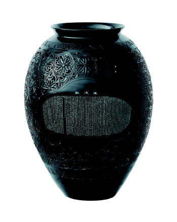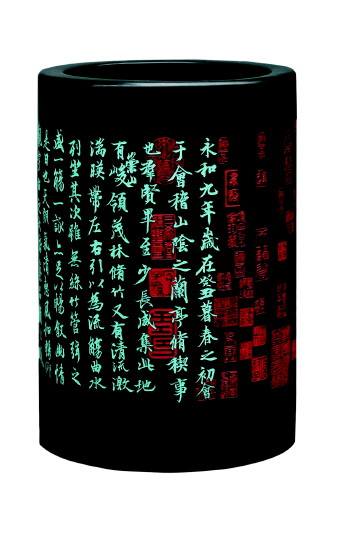 梁子黑陶融合书法艺术于卷筒之上,尽显遒劲伟美的创造力量、超越奇美的艺术思想、豪华精美的韵调辞采。此卷筒正本拓印、游丝描红,采用勾、刻、雕、凿综合技法,将整篇兰亭序镌刻,是天下第一行书,行、神、韵尽显,使黑陶的厚重大气与高贵典雅相得益彰,完美统一。