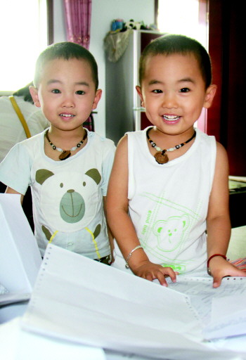 双胞胎哥俩(资料片)。 本报记者 王小会 摄