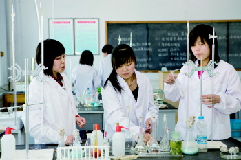 生物专业学生进行专业实训。