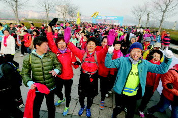 28日,青岛市首届“万象起跑 临海毅行--2014万象城杯迎新毅行健身大会”在汇泉广场拉开帷幕。现场近万市民与大会组委会特邀嘉宾奥运冠军张娟娟、花样滑冰世界冠军陈露一起毅行在青岛沿海木栈道上,共同分享畅快毅行带来的乐趣。