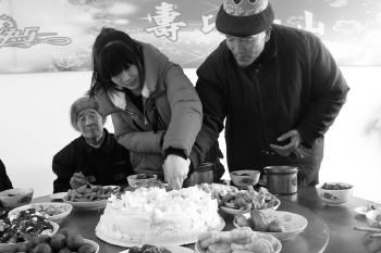 12月27日,聊大传媒技术学院志愿者来到东昌府区道口铺敬老院,将勤工俭学赚钱买来的慰问品送给老人,并为老人打扫卫生、表演节目。 本报记者 张跃峰 通讯员 苏婧 摄