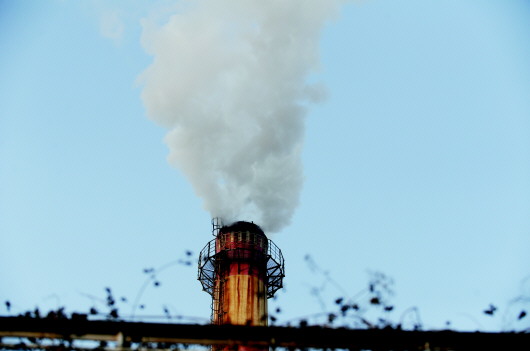 ◥12月7日,济南遭遇雾霾,市区的几个大烟囱仍在喷吐烟雾。 本报记者 周青先 摄