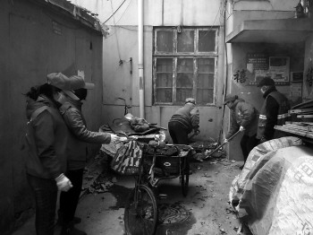 29日,在潍坊市芙蓉街社区,社区志愿者正在清理社区内的垃圾。为了迎接文明城市的创建,芙蓉街社区工作人员跟志愿者对社区里的卫生死角进行清理,保证社区里卫生环境干净整洁。 本报记者 孙国祥 摄影报道