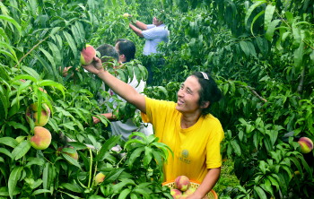 恒源街道梁家村的双盛永莲蜜桃合作社喜获丰收。