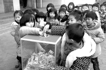 学校师生为小青山募捐。 本报记者 李德领 摄