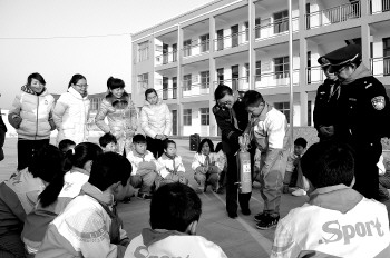 29日上午,为强化校园安全,提高师生安全防范意识和自我保护能力,菏泽市公安局开发区分局丹阳派出所教导员黄升起带领社区民警、专职消防员,来到辖区桑屯小学,给学校老师和学生上了一堂生动的“校园消防安全早课”,向师生讲授消防安全知识、逃生知识,并现场演示灭火器材使用。