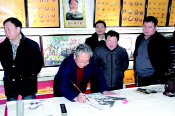 26日,为纪念毛泽东诞辰121周年和传递红色文化精神,郓城举办了“深深领袖情·共圆中国梦”山东书画红旅行文化展,12100枚各时期的毛泽东像章在传递红色博物馆展出,12位书画艺术家现场挥毫泼墨,共抒豪情。据悉,此次红色文化展历时三天。当日上午接待观众400余人。
