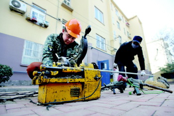 29日,施工人员正在为李沧区楼山路5号楼的居民铺设供热管道。据悉,楼山路5号楼建于上世纪80年代,因种种原因一直未能实现集中供暖。明年1月初,这里的35户居民将彻底告别土暖,过上“暖冬”。