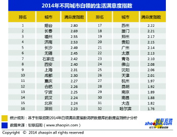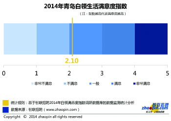 值得注意的是,根据报告,2014年青岛白领生活满意度指数为2.10,低于全国白领平均生活满意度指数2.22,在全国32个主要城市中排名第23位。青岛白领对生活的满意度较差。
