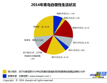 而这其中,性福成了一个大难题——近半数青岛白领每月性生活次数低于1次,其中,36.1%为单身。仅有约1/4的青岛白领每周至少1次性生活。由此似乎可以解释青岛白领“性”福指数在生活各项指数中最低的原因。