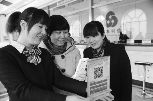 无棣农村合作银行优化微信平台提升服务水平,新设信息查询服务,微友们可以查询到最新优惠活动和全县营业网点联系电话,方便客户咨询、预约。此外,通过“无棣合行电子银行”微信平台链接到山东农信官方网站、自助缴费、银联在线、农信手机银行(WAP)、手机银行(短信版)等登陆界面,即可办理行内转账、跨行汇款、自助缴费、账户查询等非现金业务,有效缩短了与客户的空间距离,更好地服务客户。图为该行大堂经理向客户推荐使用微信平台。 (吴玉洁)