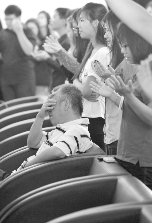 2014年12月31日,在印尼泗水国际机场,亚航失事客机乘客家属为亲人祈祷。 新华社发
