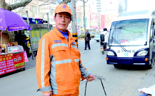 国长秋是历下区建筑新村环卫所的环卫工,他及时抱住突发脑梗的老人,并忍着自己的脚伤,将老先生背回了家,没跟任何人提这事。他说自己不担心被赖上,但碰上了就得帮。