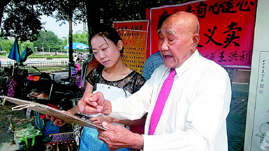 鲁甸地震后,九旬老人王洪利吃不下饭了。他在泉城广场义卖自己的书画,共筹集1220元善款,全部捐给了灾区。