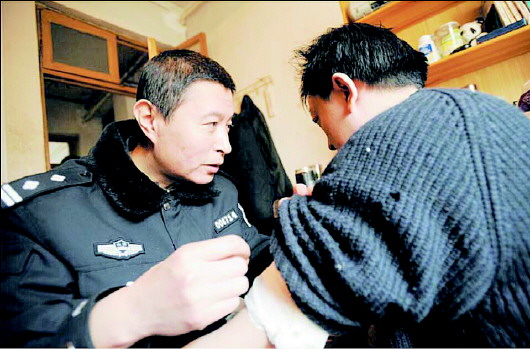 历下区建筑新村派出所民警陆斌,两年来,在他的开导下,一名患有严重精神分裂症的病人情绪逐渐稳定。每晚9点,陆斌不管多忙,总会步行20分钟到病人家中陪其吃药。患有严重的精神分裂症,这个“谁也管不了”的病人却对陆斌言听计从。陆斌是个老民警,经常在社区走访,辖区不少居民都有他的电话号码,不少居民有事就给他打电话。