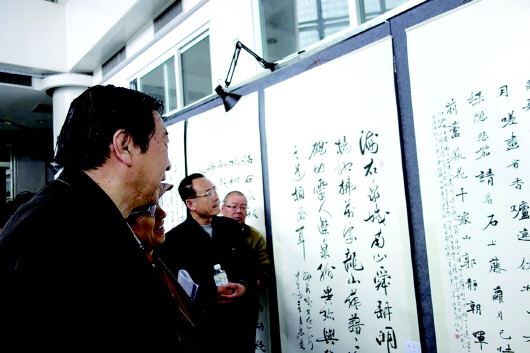 高新区文化馆书法作品展吸引了不少市民参观。(资料片)