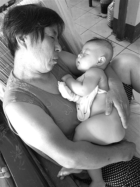 宝贝喜欢抱着睡,于是姥娘就累成这样抱着睡着了。