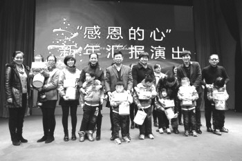 12月25日下午,济南市残疾人康复中心在济南军休大厦举办了“感恩的心”新年汇报演出。在汇报演出中,中心康复教师、大学生志愿者、孤独症儿童表演了歌曲、舞蹈、音乐剧等精彩的节目,现场的观众被深深感动。活动中,出席领导为济南市明天儿童康复中心的优秀康复教师颁发了奖品,并为孤独症儿童发放了节日礼物。济南市残疾人康复中心负责人俞艳、济南市明天儿童康复中心主任刘梅为山东体彩中心等20家爱心单位颁发了“爱心大使”聘书,感谢大家在关爱孤独症儿童方面的爱心与付出。
