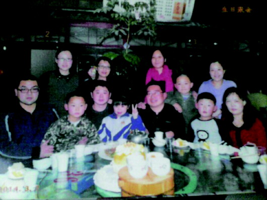 照片最左那三个是“神医”一家,他医术精湛,很爱讲些冷笑话,今年家里还添了个金羊宝宝。往右是“才女”一家,他们有个天资聪颖,表演画画相当好的宝贝女儿。中间是我们三口,孩子今年中考,往右是“小画家”母子,右一是我们的“大姐大”尹姐,女儿就将高考。
