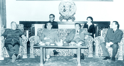 1963年3月周总理会见老挝富马首相,何振梁任翻译。