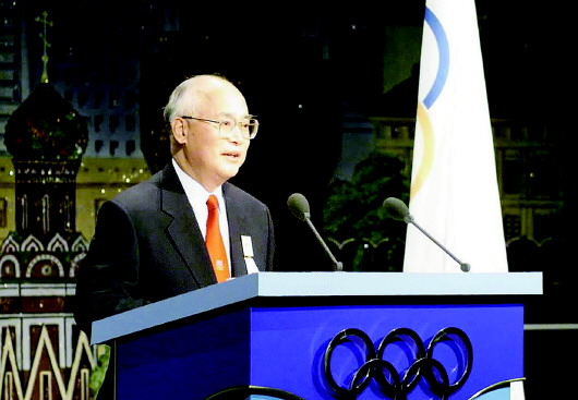 ▲2001年7月13日,何振梁为北京申奥进行陈述。