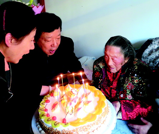 本报1月4日讯(记者 宋立山 通讯员 王继峰 翟蒴) 4日上午10时,济南市槐荫区康乐老年公寓热闹非凡,歌唱声此起彼伏。元旦过去三天了,这是搞的哪门子庆典?原来,当天是纪淑桂老人的103岁生日,元旦假期过后上班第一天,槐荫区老龄办和营市街街道相关人员就带上鲜花、蛋糕、牛奶、鸡蛋,赶到康乐老年公寓为老太太祝寿。