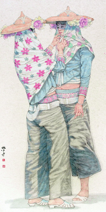 作为工笔重彩界的代表性人物,韩学中的作品以重彩、填金、白描等形式的丰富性,建构了作品人物主体、人物与人物、人物与生活、人物与自然等笔墨关系的多样形式。不少来到展览现场参观的艺术院校学生认为,近年来他们也在不断学习重彩绘画,韩学中老师师从于蒋采苹先生,工笔重彩作品十分精彩,早期《净地》系列有波提切利的美感,给人以纯净、梦幻的享受。不仅如此,韩学中老师所有的作品都显示出他的基本功力和人物服饰的考究,他作品中的人物形象衣饰搭配非常和谐,根据布料的不同描线方法,以及各种细节的整理,都体现出画家细致之处。他的淡彩画创作是用重彩的手法进行创作的,虽然色彩很淡,但整幅作品分量不减,粗麻纸系列中,对纸张的挑选与所刻画的农民工,留守老人、儿童形成了很好的反衬,既有传统的笔墨基础,又有很强的时代特色,细节之处见功夫。