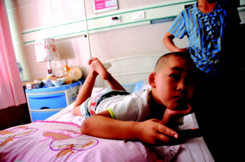 ◥小志昊正在北京接受骨髓移植前的准备工作。