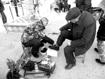 1月1日,成武雷锋志愿者服务队在成武县府前广场开展元旦献爱心活动,为市民义务擦鞋、修鞋、理发、修车、测量血压等活动。