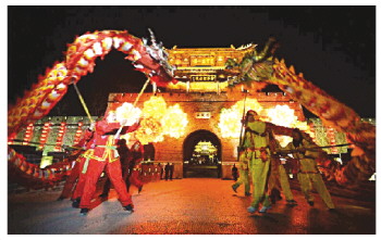 2015年1月1日上午11点,迎新入城贺元旦仪式暨台儿庄古城开城大典在台儿庄古城西城门举行。伴随着威震四方的锣鼓声,台儿庄古城西城门缓缓地打开,仪仗鼓手们整齐列队,当“乾隆皇帝”与“文武百官”御驾亲临景区西城门,为古城和游客送上新年祝福并当场宣读《台儿庄古城迎新赋》,拉开了2015年迎新祈福的序幕。