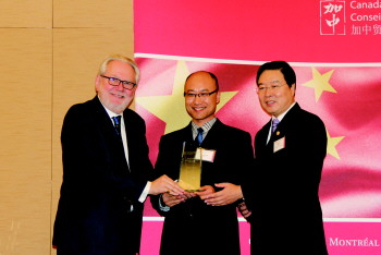 ▲林强董事长与CCBC中加贸易理事会主席哈德及中国驻多伦多领事馆总领事房利的合影