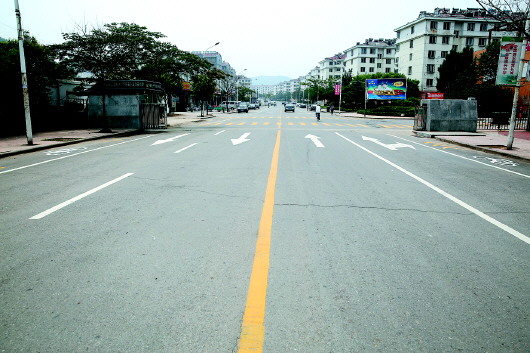 乐天小区施划交通标志后,车道一目了然。 本报记者 张帅 摄
