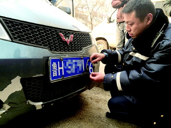 贴上带数字的铁片,变成了另一副车牌。本报记者 庄子帆 摄