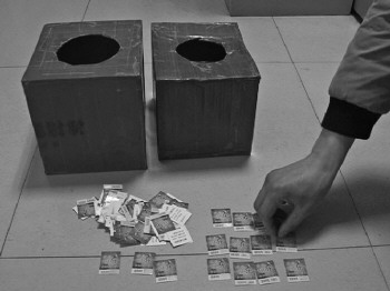 2015年1月6日早上9时许,派出所、治安大队出动民警20余名警力,兵分两路实施收网。“上!”6日上午10时许,随着一声令下,民警迅速上前将8个犯罪嫌疑人全部控制,在现场查获奖票13000余张,诈骗现金1200元。